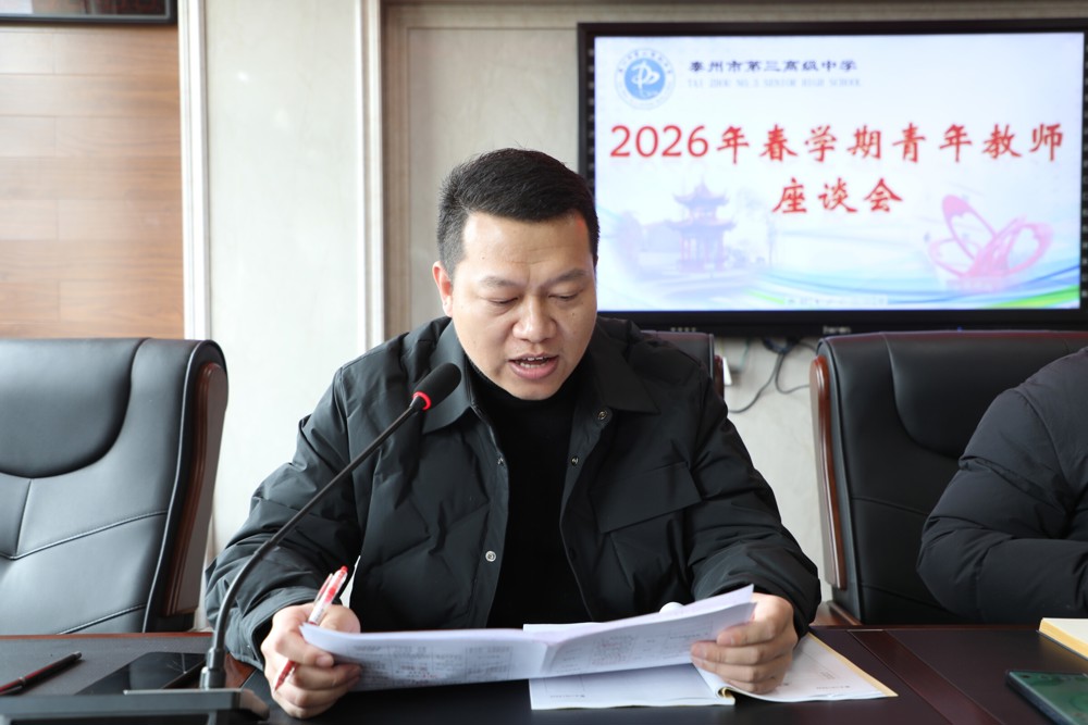 三月春来,万物竞发。为进一步加强学校青年教师队伍建设,总结“青蓝工程”阶段性成果,明确未来发展方向,3月11日上午,泰州市第三高级中学“青蓝工程”工作推进会在行政楼二楼会议室召开。近三年入职的24位青年教师、全体指导教师、年级主任及相关处室负责人齐聚一堂,共话成长、共谋发展。分管领导徐林副校长出席会议并作专题讲话。